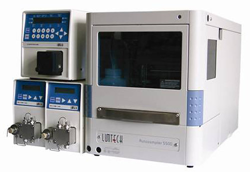LUMTECH高效液相色譜儀,左側為液相色譜的輸液泵和檢測器,右側為自動進樣器