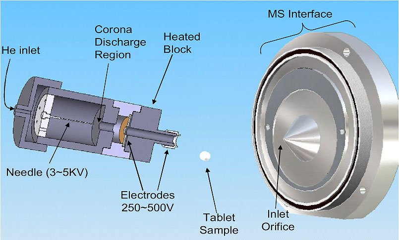 DART由JEOL美國公司的Chip Cody博士和Jim Laramee博士發明,目標是利用低能量電子產生完整的分子離子(GC/MS所用的高能量電子束碎裂分子離子-編者按),而以前的這種過程要在超高真空中才能實現。兩位博士嘗試著在敞開大氣下完成這一過程,他們做到了,于是,實時直接分析技術誕生了!隨后,他們通過加熱載氣(氦氣或氮氣)來提高樣品揮發性,增加了第三維的化合物分離。DART的出現不僅僅為化學分析提供了一項可以解決他們實際問題的新技術,敞開大氣壓下完成分析也標志著質譜技術的顯著進步!( DART原理